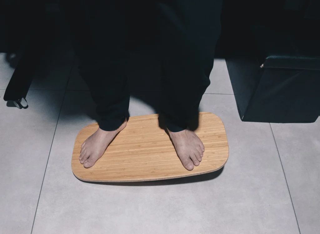 BB01を足元に置くと、この状況が変わります。完全に安定しない構造によって身体が自然と体重移動を始めるからです。前後に少し揺れるだけなのに、同じ姿勢を固定し続ける時間が明らかに減ります。