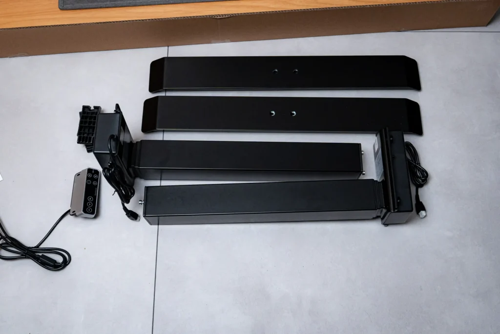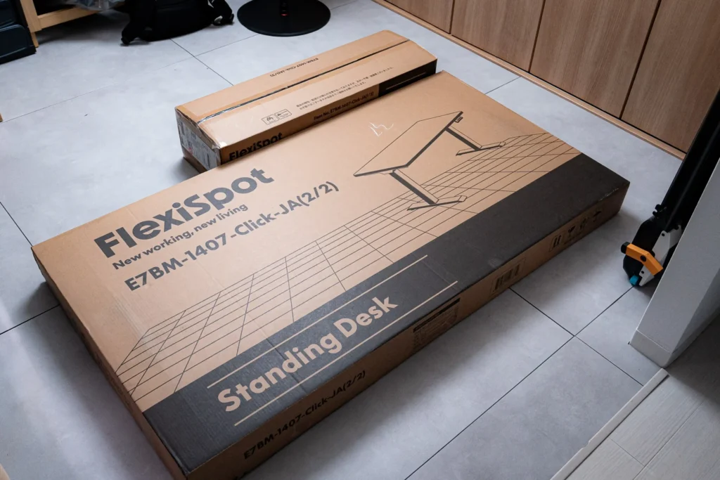 今回提供いただいたのは、FlexiSpotのロングセラー昇降デスク「E7」を全面リニューアルした新モデル。最大の特徴は、専用クリックロック機構の採用で組み立て時間を大幅に短縮したことです。