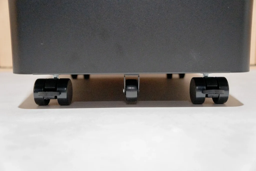 キャスターを4本取り付けて本体の下に装着するだけで設置完了です。作業時間は5分もかかりません。