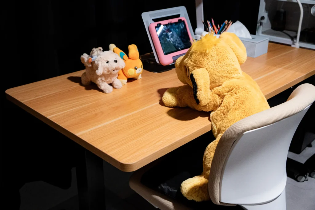 昇降デスクは「大人のテレワーク向け」というイメージが強かったのですが、子ども用として使ってみるとむしろ相性がいいと感じています。