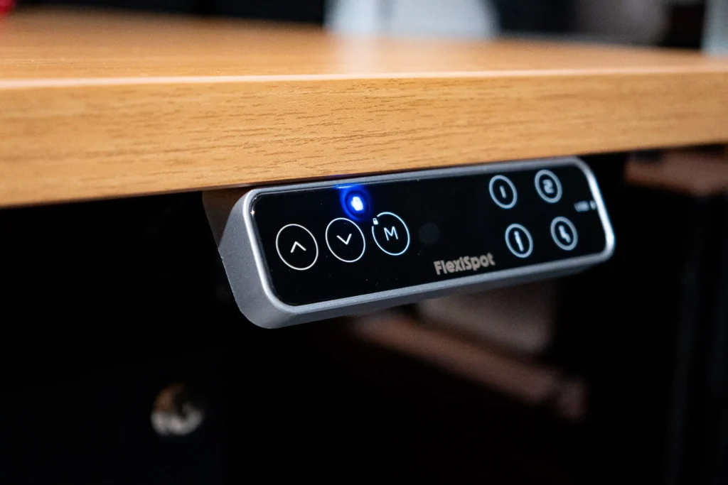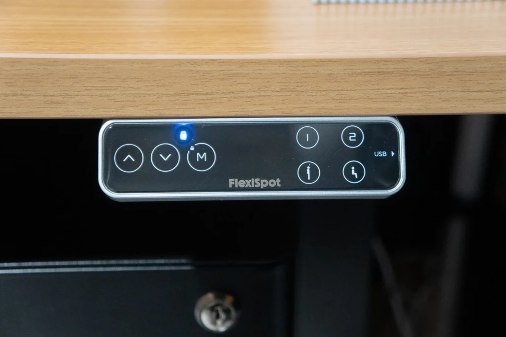 コントローラーはタッチパネル式で、上下ボタンを押し続けるだけで昇降します。昇降速度は40mm/sで、最低から最高まで動かすと約16秒ほど。操作中に手を離せばその場で止まるので、細かい高さ調整もストレスなくできます。