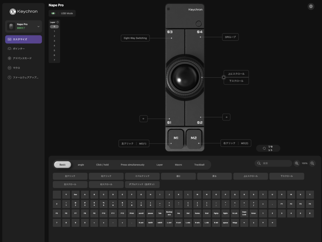 ProtoArc EM01NLのレビューで「EM01NLはカスタマイズできない」と書きました。カスタマイズできるできないという軸では、Nape Proはまったく別のクラスにいます。さらにその設定がPC依存ではなくデバイス依存であることが、複数環境を行き来する人間には特に刺さります。