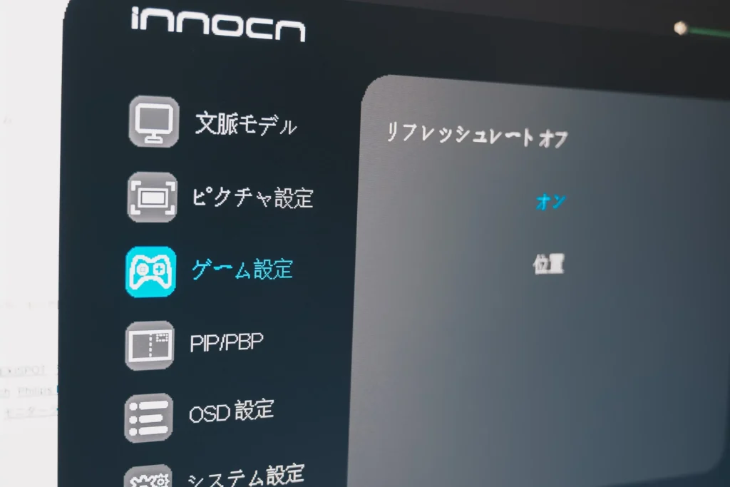 INNOCN 27D1Uのリフレッシュレートは60Hz。最近はゲーミング用途を意識した144Hzや165Hzモニターも増えていますが、このモデルはあくまで作業・映像閲覧・クリエイティブ用途向けの設計。