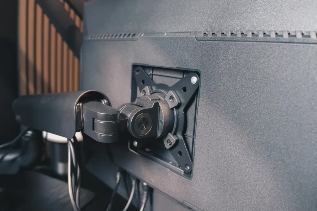 VESAマウントには対応しているので、モニターアームで浮かせた方が利便性は格段にアップします。