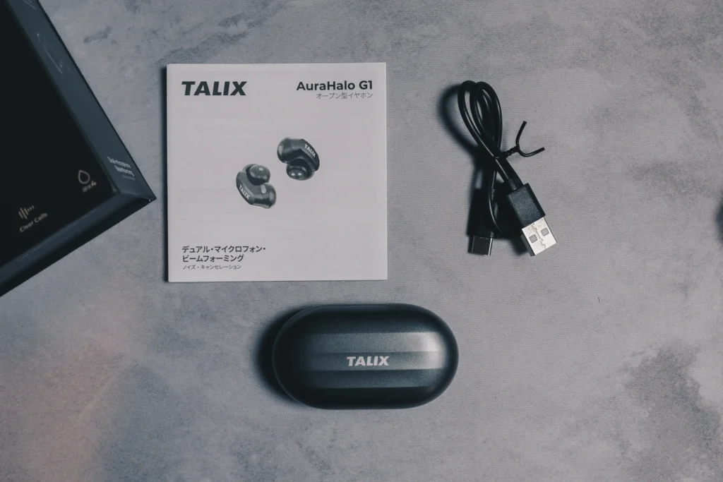 今回レビューする 「TALIX AuraHalo G1」 は、「TALIX」の最新モデル。独自の「聴覚注意力システム」と呼ばれるビームフォーミング技術を搭載し、雑音が多い環境でも人の声をクリアに拾ってくれるのが特徴です。